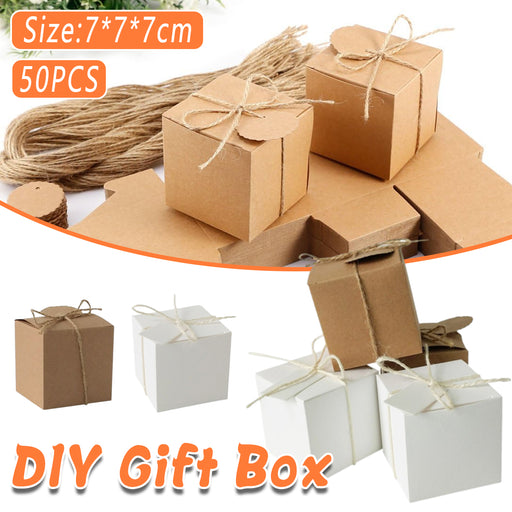 View full details50 Pcs Kraft Paper Gift Boxes 7x7x7cm with Rope and Tags
