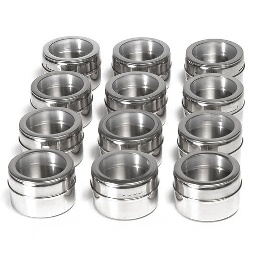 Organize your kitchen or workspace efficiently with this set of 12 magnetic stainless steel spice storage jars. Each jar features a clear lid for q...