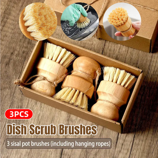 View full details3 Pcs Dishwashing Brush Set Short Handle Natural Fibre