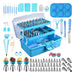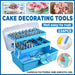 This 236-piece cake decorating tools kit supports restaurant dessert stations and bakery prep with piping tips, bags, and finishing tools for cakes, cupcakes, cookies, and more, stored neatly in a convenient box.