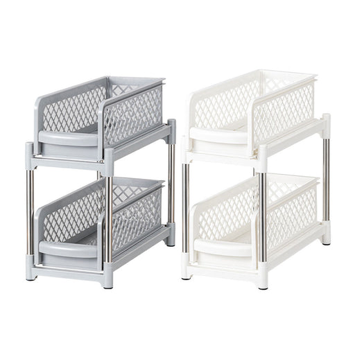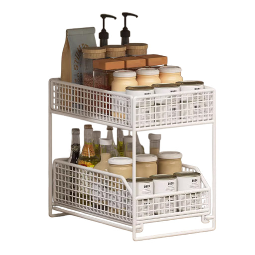 View full detailsPull-Out Storage Shelf Two-Tier White Wireframe Organizer