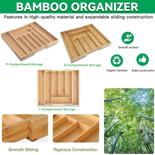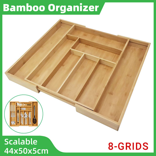 Expandable Bamboo Cutlery Tray Adjustable 32cm to 50cm