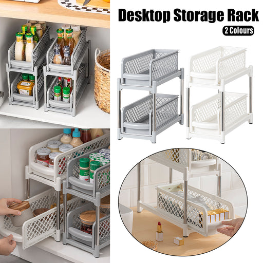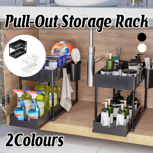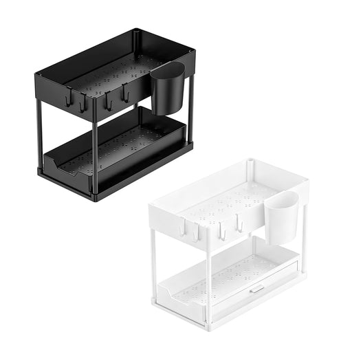 View full details2 Tier Under Sink Organiser Pull-Out Rack with Hooks Cup