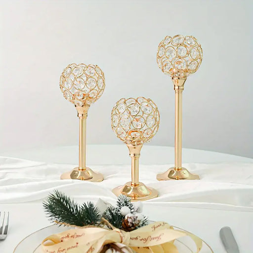 Add a touch of elegance to your home or special occasion with this beautiful 3-piece crystal candle holder set. Each holder features a sleek metal ...
