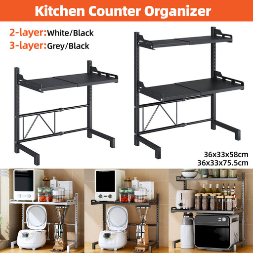This expandable microwave rack shelf supports restaurant prep benches and kitchen countertops by organising microwaves, toasters, jars, and daily e...