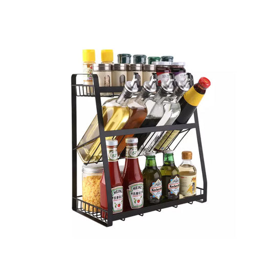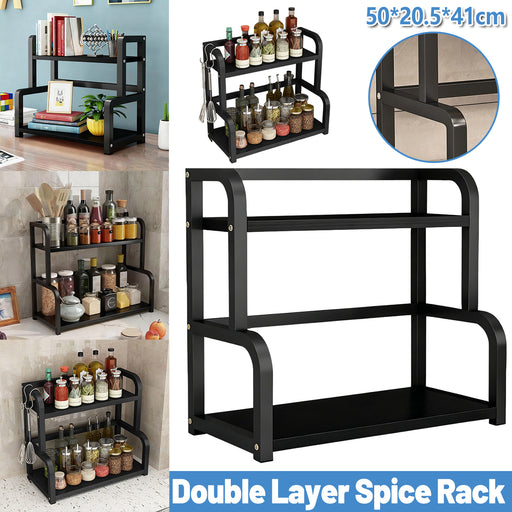 View full details2 Tier Spice Rack Freestanding Steel Black With Hooks