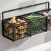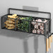 This wall-mount storage rack helps optimize kitchen or bathroom space. Made of durable iron with an anti-rust coating, it features a 3-grid partition for neat storage of spices, condiments, or small items. The punch-free adhesive mounting allows easy installation on smooth surfaces, and side hooks add extra storage for utensils. It suits kitchens, pantries, or cabinets, adding a modern industrial touch.
