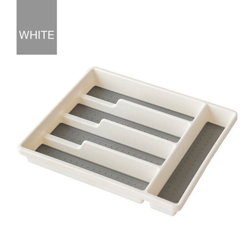 Keep drawers neat at a glance. Food-safe PP + TPR body with non-slip lined base and rubber feet to stop sliding. 5 small slots for forks, knives, s...
