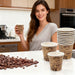 These 50ml mini disposable paper cups are designed for restaurant tasting stations, café sampling counters, and event service where small portions are needed. Each cup features a coffee-themed print with text such as “espresso” and “COFFEE”, making them suitable for serving shots, condiments, sauces, candies, or mini desserts during functions and daily service.