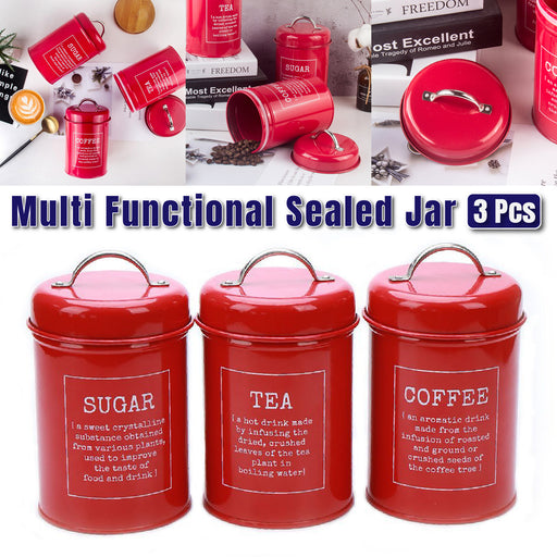 View full details3 Pcs Airtight Storage Jars with Handles Red Metal Set