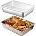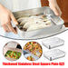 This set of stainless steel square food trays with lids is an ideal solution for your food storage and preparation needs. Designed for durability, the trays are crafted from high-quality, food-grade stainless steel, ensuring they withstand daily use while maintaining their sleek appearance. These trays are perfect for various occasions, including cooking, storing leftovers, grilling, and serving meals at home or outdoors. The tight-fitting lids keep food fresh and secure, while the flat, stable bottoms make them suitable for use in ovens or refrigerators. Their versatile and space-saving design ensures they fit easily into your kitchen setup.