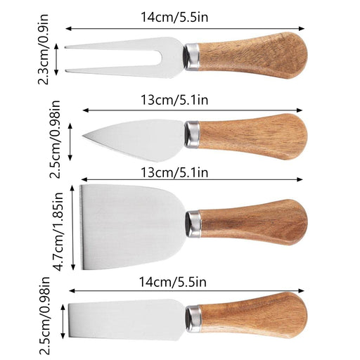 Enhance your cheese-tasting experience with this 4-piece stainless steel cheese knife set featuring polished food-grade blades and elegant acacia w...