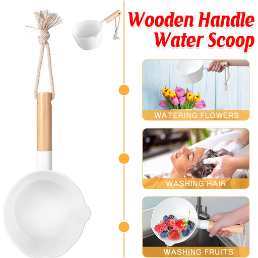This versatile water scoop pairs a durable wooden handle with a thickened plastic ladle for everyday tasks such as baby baths, washing hair, wateri...