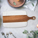 Enhance your culinary and dining experiences with the Marble & Wood Chopping Board. Crafted from a blend of wood and marble, this multi-use board is perfect for cutting steak, preparing Western dishes, slicing fruit, and serving cheese. Available in white and black, it adds a touch of elegance to your kitchen while providing a durable surface for all your food - prep tasks. The convenient handle design allows for easy carrying and hanging storage, helping to keep your kitchen organised and space-efficient.