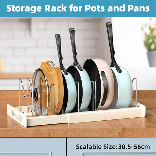 View full detailsTelescopic Pot Rack Organiser with Stainless Steel Dividers