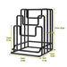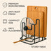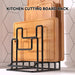 These metal cutting board stands support restaurant kitchens and prep areas by storing cutting boards and round lids upright to free counter space and improve organisation. The wrought iron frame with anti-rust coating is designed for daily kitchen use, and the open vertical layout helps promote ventilation and air circulation between items. The compact size fits on most counters and the sturdy base helps keep boards steady during storage.