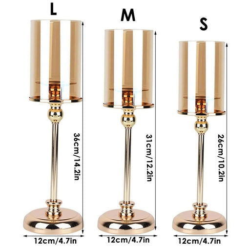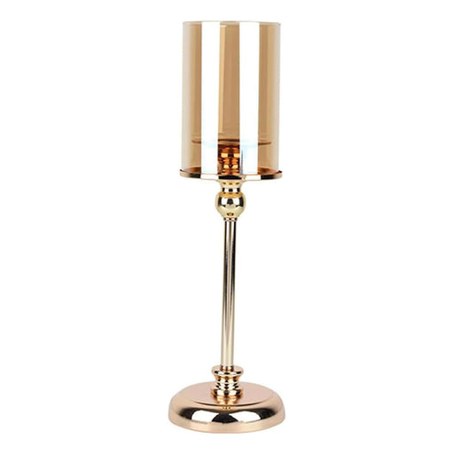 Enhance your space with this elegant glass candlestick holder, designed for a romantic and sophisticated ambiance. Crafted with a champagne-coloure...