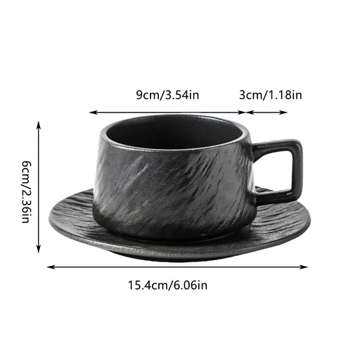 Black Ceramic Coffee Cup with Saucer, 90x60mm
