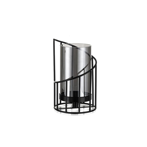 wrought iron candlestick, a fusion of black metal and glass, adds elegance to your living room, dining table, or candlelit dinner. It features a sp...
