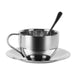 This 180ml stainless steel coffee cup set is designed for practical drink service in restaurants, cafés, and office break areas. Made from food-grade 304 stainless steel, the double-walled cup helps maintain beverage temperature while providing a comfortable grip. Each set includes a matching saucer and teaspoon for neat presentation when serving tea, coffee, or hot chocolate, and it is also suitable for cold drinks.