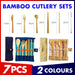 7 Pcs Reusable Bamboo Cutlery Set for Camping with Pouch