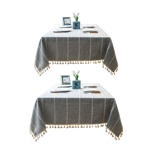 Tassel Cotton-Linen Geometric Rectangular Tablecloth