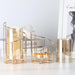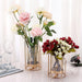 These European-style candlestick ornaments blend elegance and functionality with their golden wrought iron frames and removable amber glass holders. Ideal for romantic dinners, home decor, weddings, or festive settings, they can also double as flower vases. The spiral design adds a unique artistic flair to any environment.