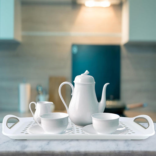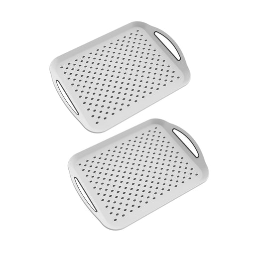 This set of two rectangular trays features double handles and a non-slip TPR surface for secure serving. Lightweight yet durable, they offer a styl...