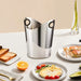 This stainless steel ice bucket suits restaurant beverage service, hotel functions, and event setups for chilling ice cubes, wine, champagne, and other drinks. The silver finish supports clean presentation on bar counters and banquet tables, while the carry handle helps with moving the bucket between service areas.