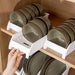 - Compact and Space-Saving: Organises plates and bowls while optimising space in cabinets or on the countertop.