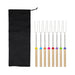 This 8-piece retractable barbecue fork set is perfect for outdoor grilling, camping, and garden barbecues. Made for convenience and safety, each fork features a smooth, rounded tip and an adjustable telescopic handle to keep your hands safely away from the heat. Ideal for roasting marshmallows, sausages, vegetables, and more, these forks are easy to clean and store. The included heat-resistant canvas bag makes them portable and organized for any outdoor adventure.