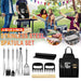 - Complete Set: Includes spatula, tongs, fork, knife, silicone basting brush, grill cleaning brush, grill mat, 2 meat claws, 10 bamboo barbecue sticks, and apron.
